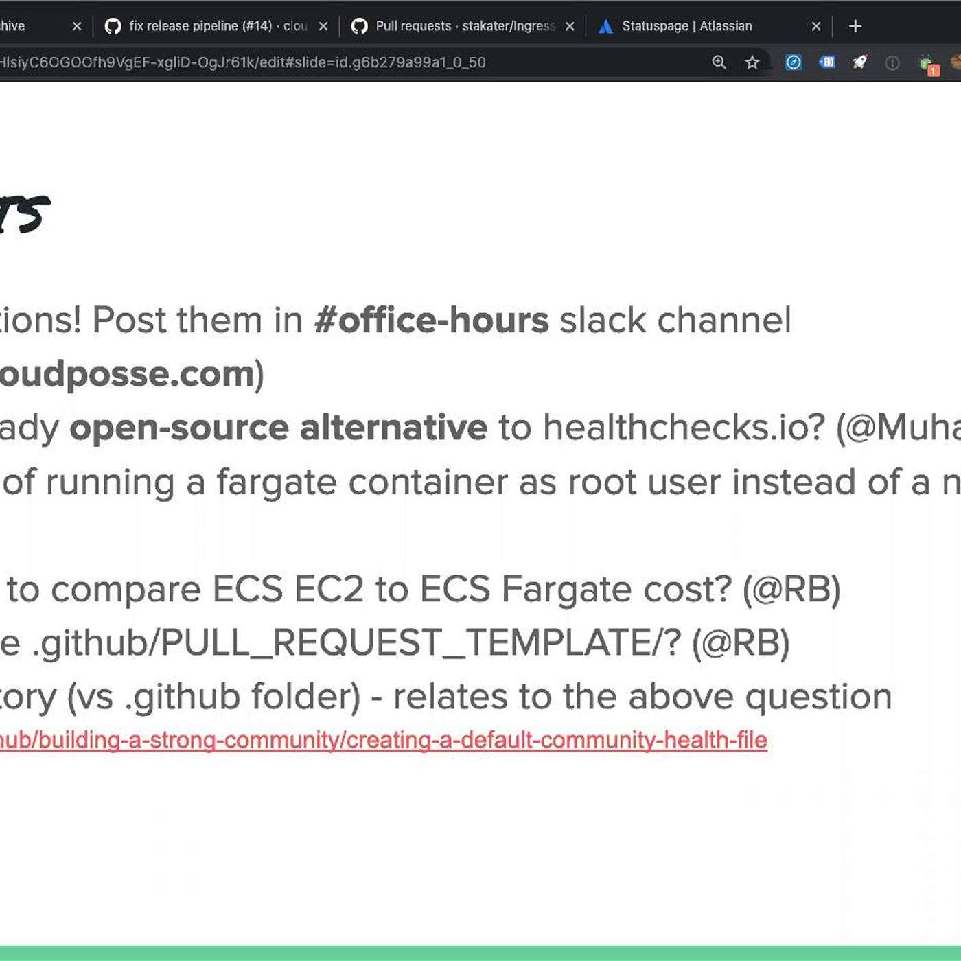 Cloud Posse holds public "Office Hours" every Wednesday at 11:30am PST to answer questions on all things DevOps/Terraform/Kubernetes/CICD related. Basically, it's like a "Lunch & Learn" session where we get together for about an hour and talk shop. These are totally free and just an opportunity to ask us any questions. You can register here: cloudposse.com/office-hours