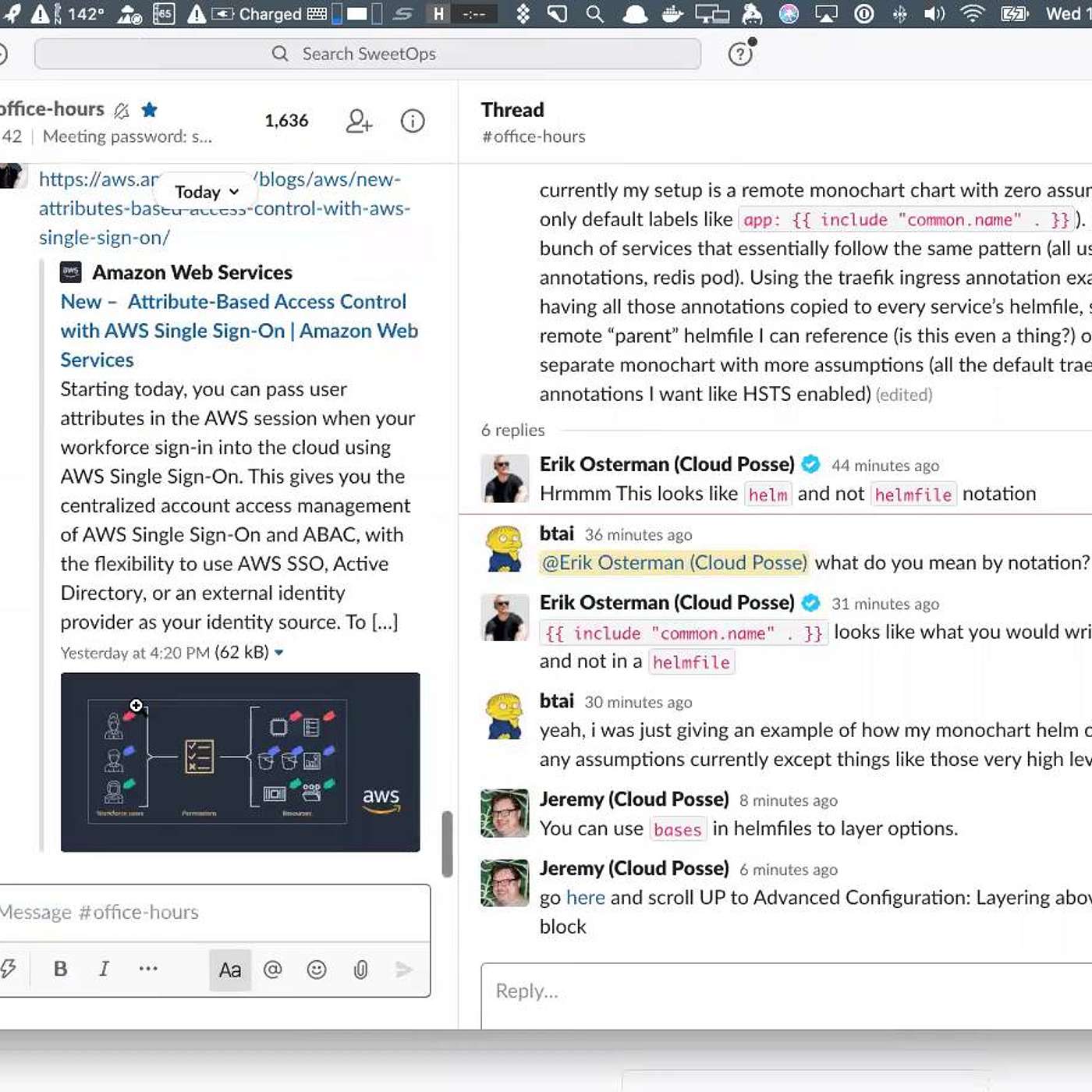 Cloud Posse holds public "Office Hours" every Wednesday at 11:30am PST to answer questions on all things related to DevOps, Terraform, Kubernetes, CICD. Basically, it's like an interactive "Lunch & Learn" session where we get together for about an hour and talk shop. These are totally free and just an opportunity to ask us (or our community of experts) any questions you may have.