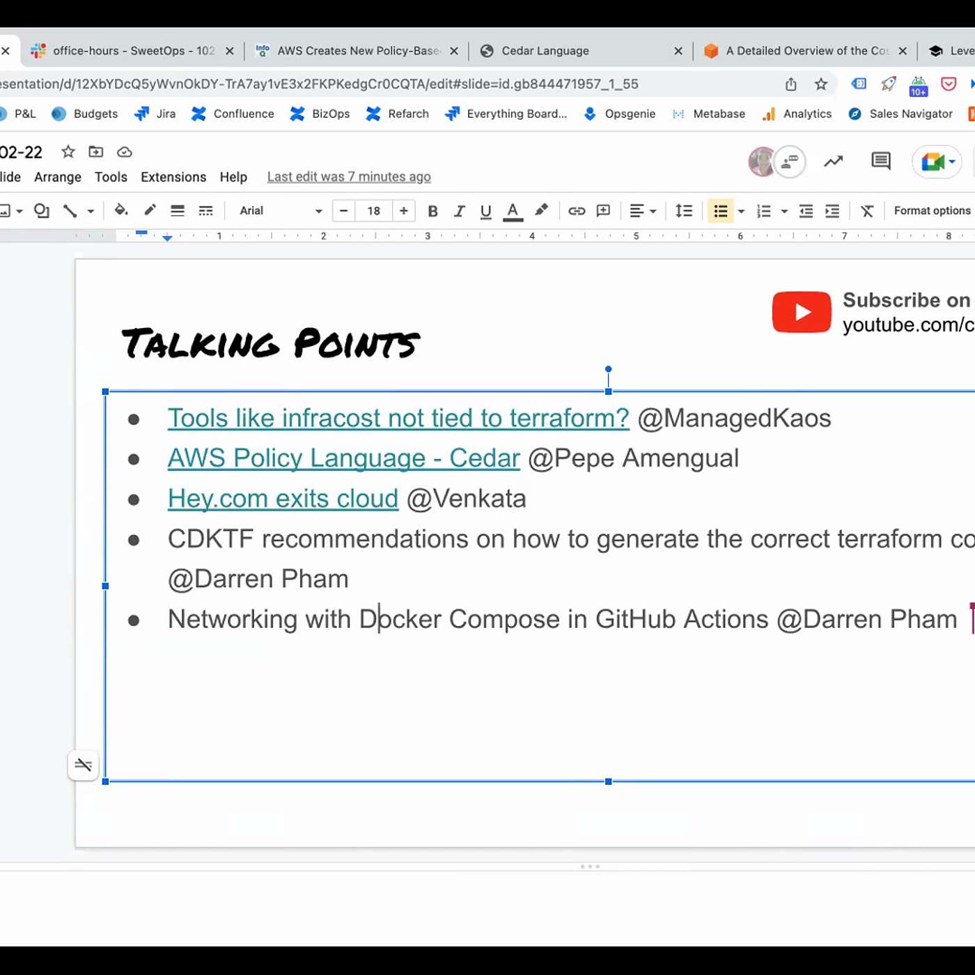 Cloud Posse holds public "Office Hours" every Wednesday at 11:30am PST to answer questions on all things related to DevOps, Terraform, Kubernetes, CICD. Basically, it's like an interactive "Lunch & Learn" session where we get together for about an hour and talk shop. These are totally free and just an opportunity to ask us (or our community of experts) any questions you may have. You can register here: https://cloudposse.com/office-hoursJoin the conversation: https://slack.cloudposse.com/Find out how we can help your company:https://cloudposse.com/quizhttps://cloudposse.com/accelerate/Learn more about Cloud Posse:https://cloudposse.comhttps://github.com/cloudpossehttps://sweetops.com/https://newsletter.cloudposse.comhttps://podcast.cloudposse.com/#officehours,#cloudposse,#sweetops,#devops,#sre,#terraform,#kubernetes,#aws