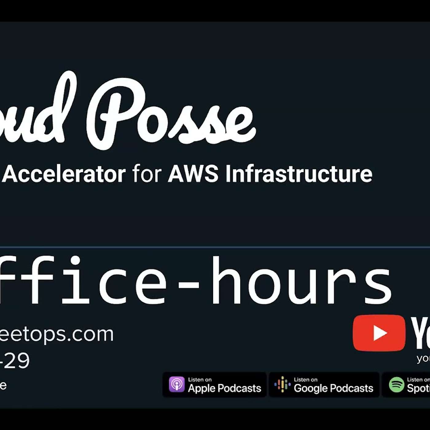 Cloud Posse holds LIVE "Office Hours" every Wednesday to answer questions on all things related to AWS, DevOps, Terraform, Kubernetes, CI/CD. Register at https://cloudposse.com/office-hours